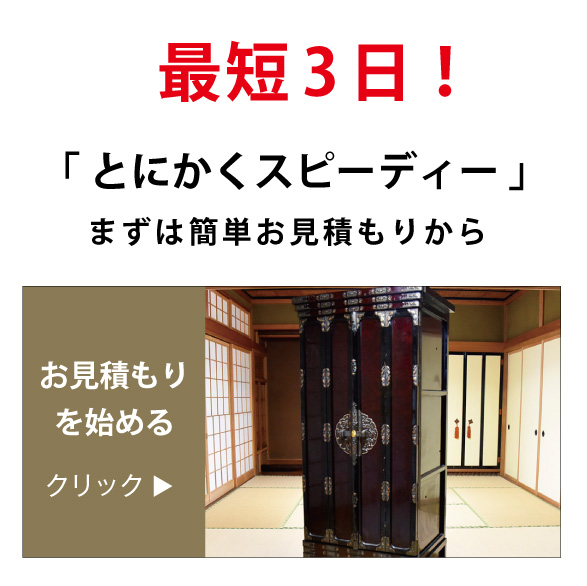 まずは「オーダーフォーム」に必要事項を明記の上、お申し込みください。または電話0120-363-223までご連絡ください。お電話でのお申し込みは仏壇サイズなど必要事項をこちらより質問いたします。
