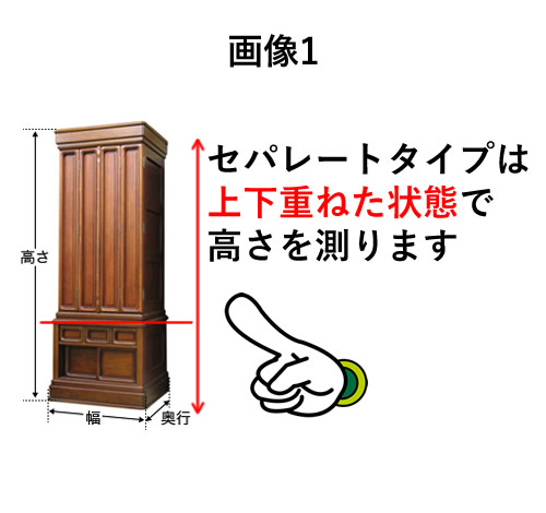 ※仏壇のサイズを測る時には、重ねた状態でお願いします。(重ねた状態参照)