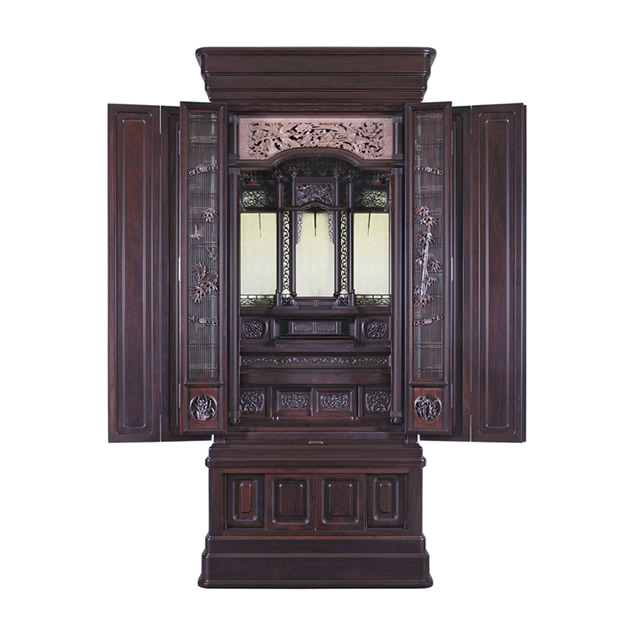 黒檀や紫檀と言われる高級銘木を用いて、木目の美しさを生かした仏壇を、唐木仏壇といいます。種類や材質により、価格が違ってくるのが特徴です。弊社では家具調仏壇、モダン仏壇も唐木仏壇として扱っています。